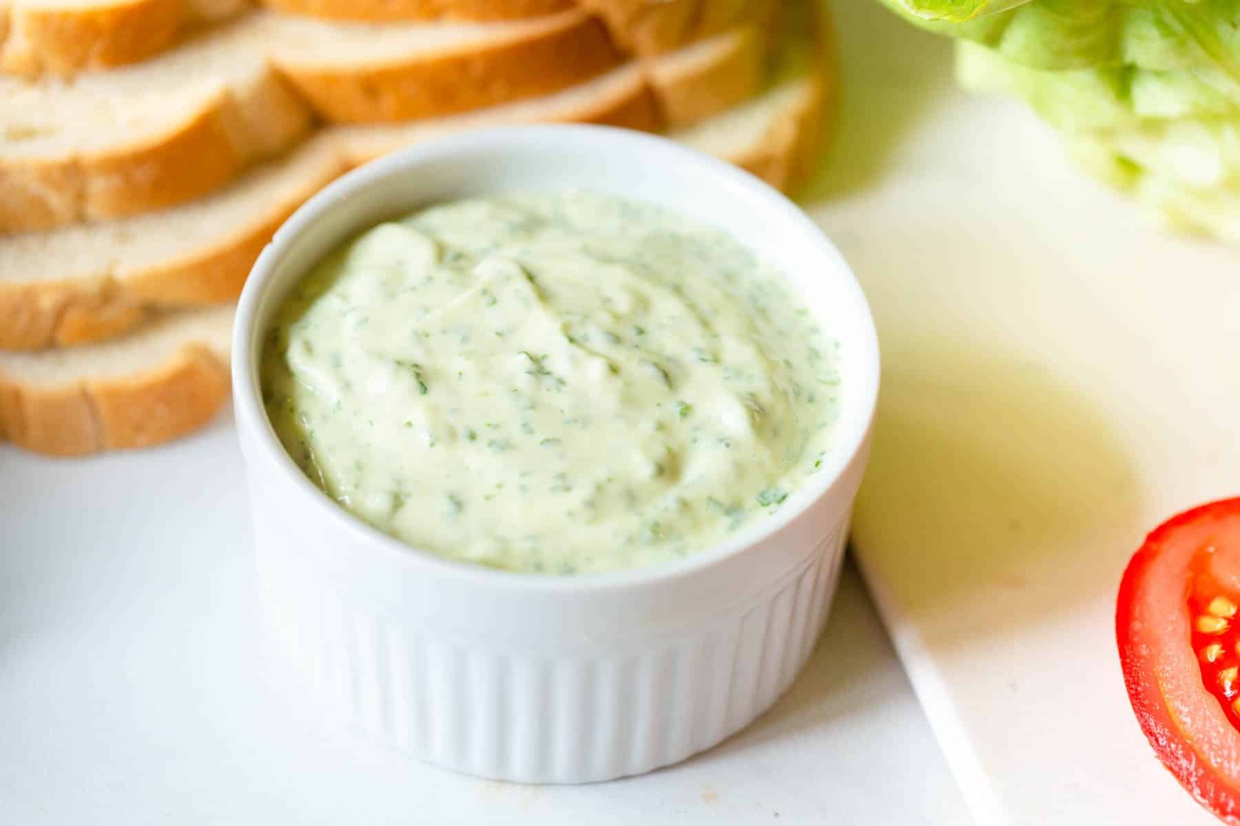 Add other fresh herbs. If your herb garden is bursting, you can use this as a basis for other variations of herb flavored mayonnaise. Fresh cilantro, fresh parsley, fresh dill, and thyme would all be delicious options to substitute for fresh basil.