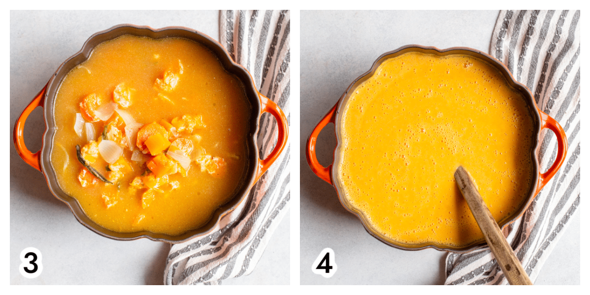 Photo 4. Using an immersion blender, puree the soup until creamy. Add the half and half and stir well to combine. Serve and enjoy!