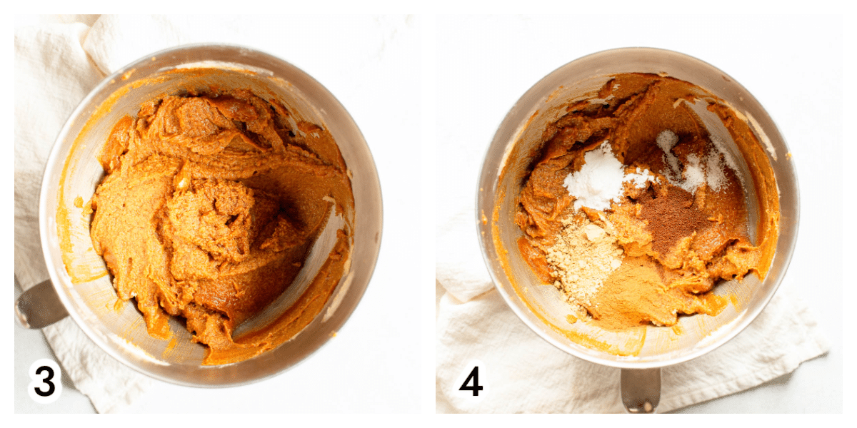 - Add the baking soda, salt, cinnamon, ginger, and cloves and beat to combine.