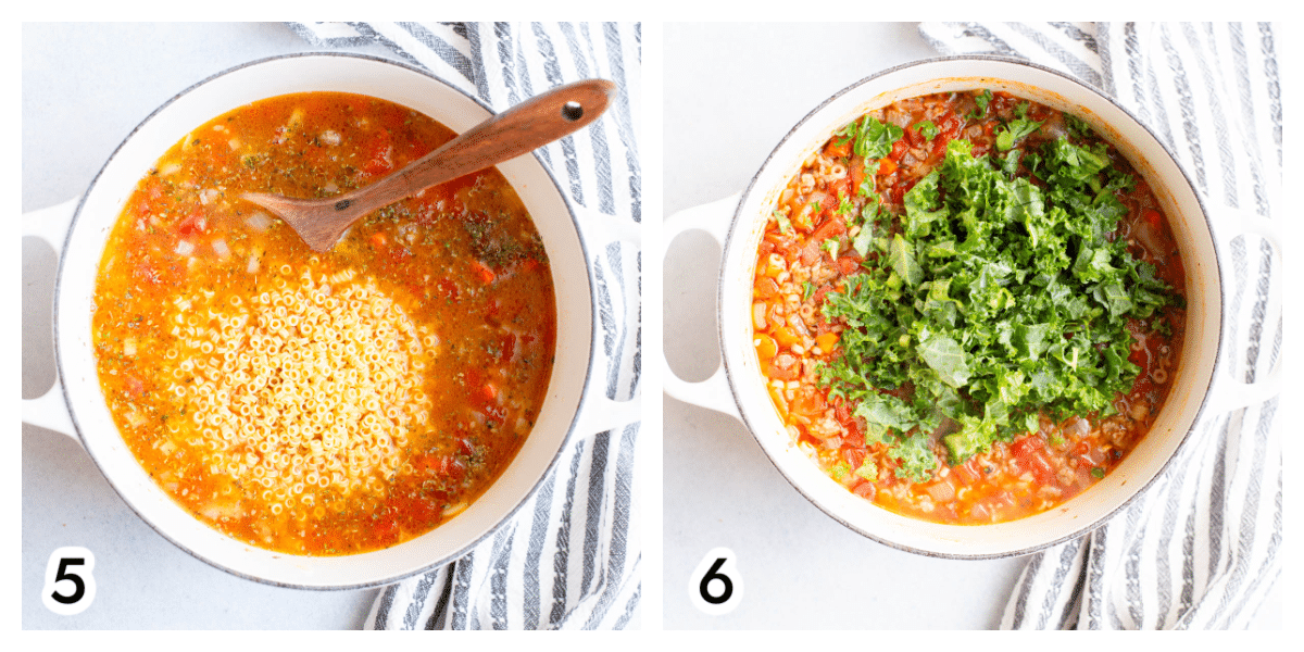 Photo 5. Add the pasta and broth. Stir and bring to a boil. Reduce the heat to medium low and simmer for 5-7 minutes, until the pasta is softened, stirring often to prevent it from sticking to the bottom of the pot.