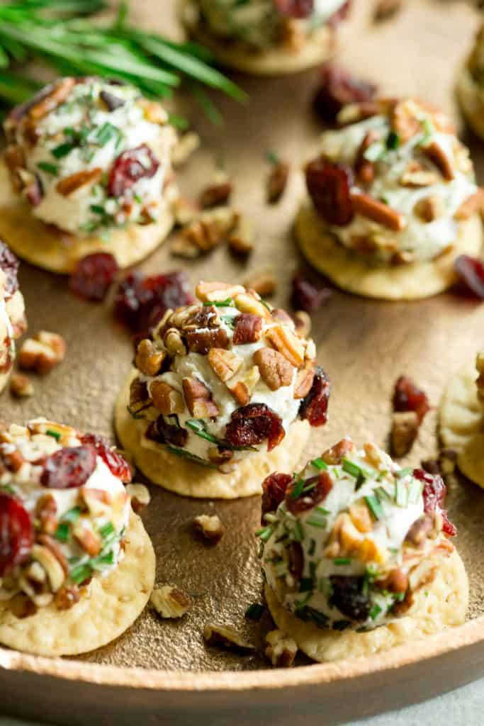 The truffles are a combination of goat cheese, cream cheese, honey, milk and pecans, along with fresh rosemary and dried cranberries. Simple yet delicious ingredients that are easy to find!