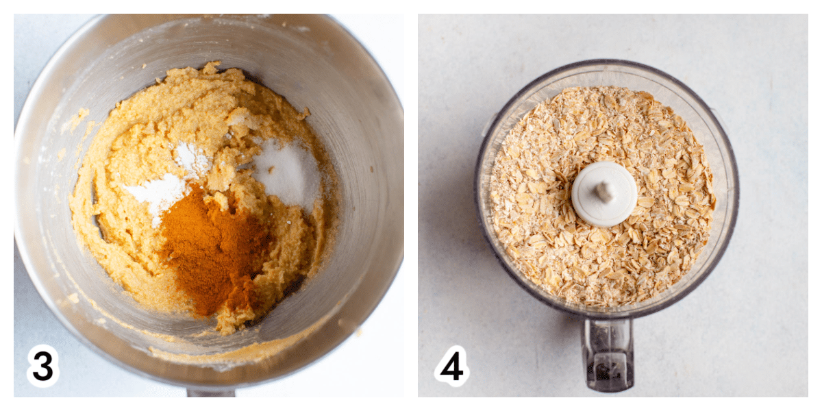 - Add the oats to a food processor and pulse 4-5 times. You don't want them completely blended, just a little broken up.