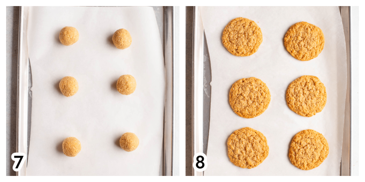 Photo 7. Form the cookie dough into cookie dough balls and place on a parchment lined baking sheet.
