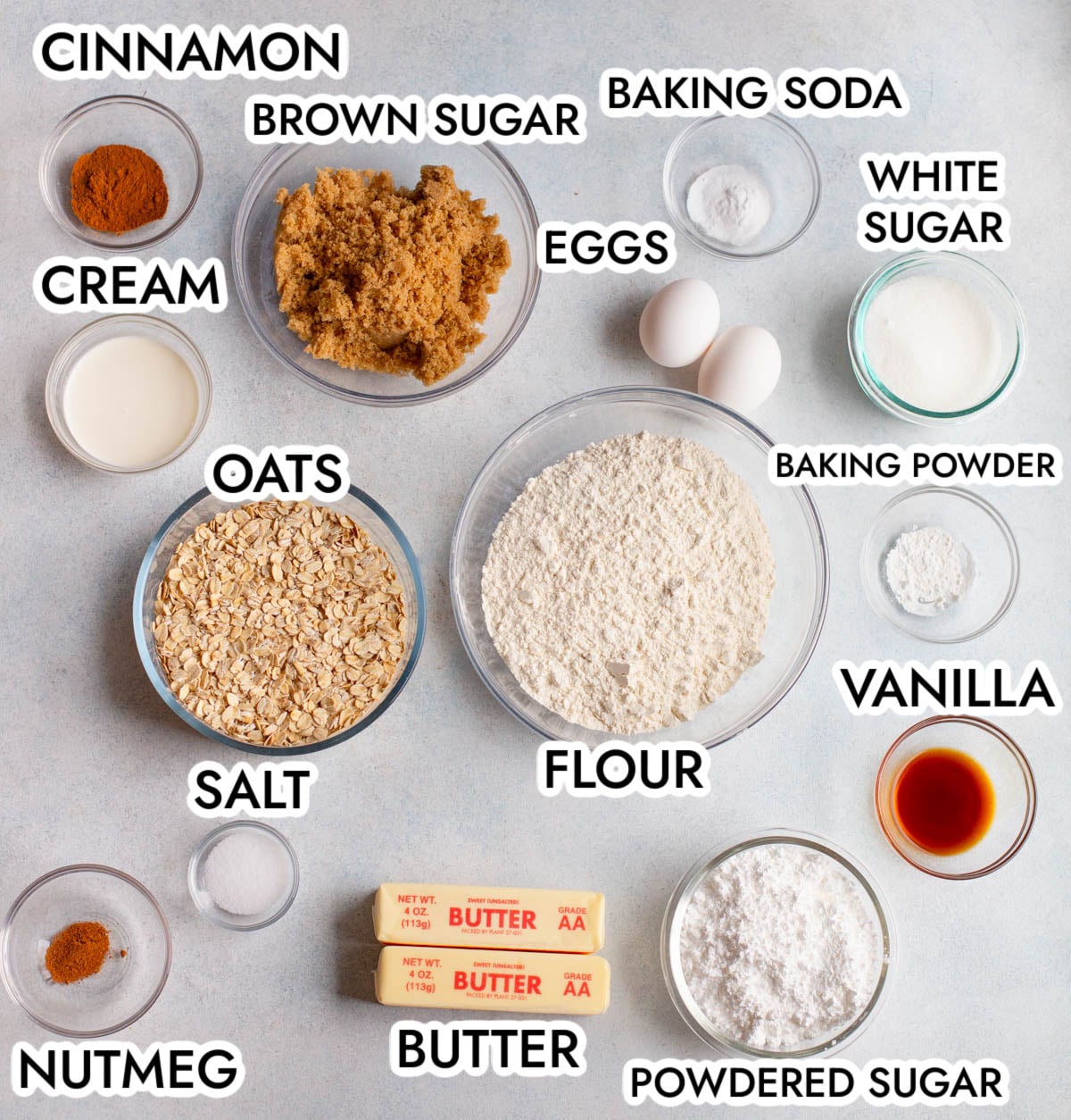 Ground Cinnamon and Nutmeg - cinnamon and nutmeg both add a cozy warmth that pairs perfectly with the oats and vanilla icing. You can add a dash of nutmeg for extra spice if you like.