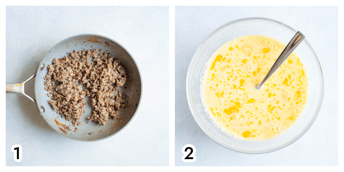 - In a skillet, brown the sausage over medium heat, breaking it into pieces as it cooks.