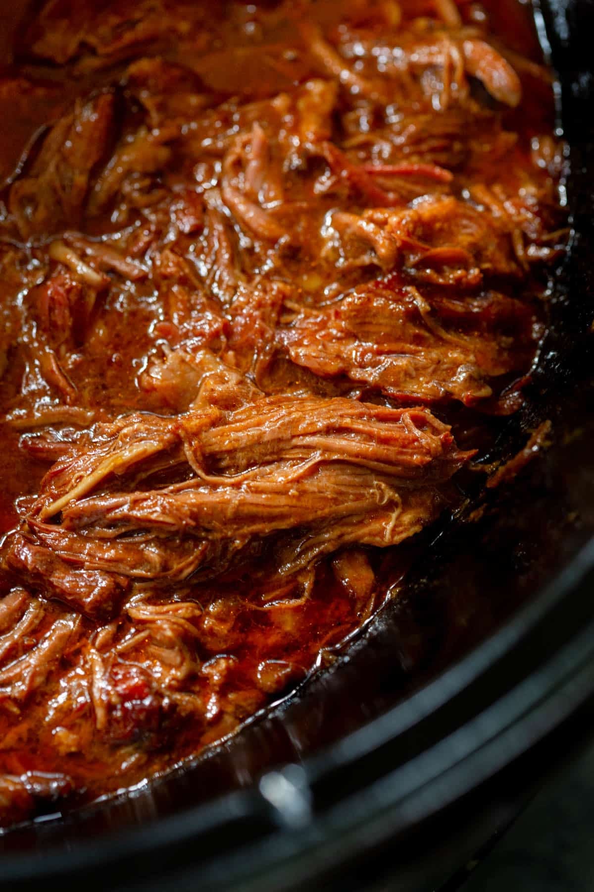 - Shred the beef and return to the slow cooker with the BBQ sauce.